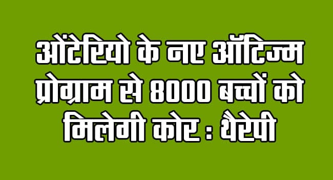 Ontario News : ओंटेरियो। राज्य सरकार ने बताया कि हमें इस प्रकार से वित्तीय योजनाओं को कार्यन्वित करना होगा जिससे ओंटेरियो ऑटिज्म योजना को बिना किसी अवरोध के पूरा किया जा सके। ज्ञात हो कि पांच वर्ष पूर्व सरकार ने इसे संशोधन के साथ प्रस्तुत किया था। लेकिन प्रस्ताव में पूर्ण जानकारी नहीं होने से इस बात को लेकर अभिभाविकों और परिवारों में अंत समय तक यहीं दुविधा रही कि भविष्य में उनके बच्चों के उचित ईलाज हेतु क्या योजना हैं।